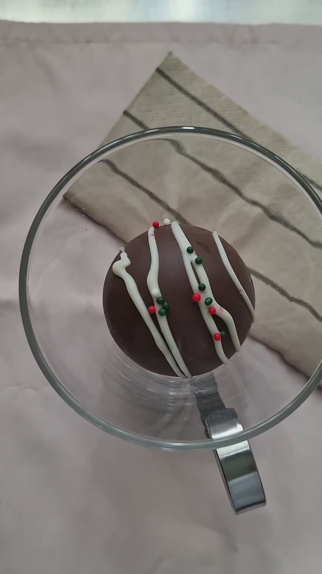 Hot chocolate mix and mini marshmallows encased in a festive chocolate bomb shell. Just pour hot water or milk over a hot koko bomb in a mug and watch it explode its goodness. Don't forget to stir and enjoy.